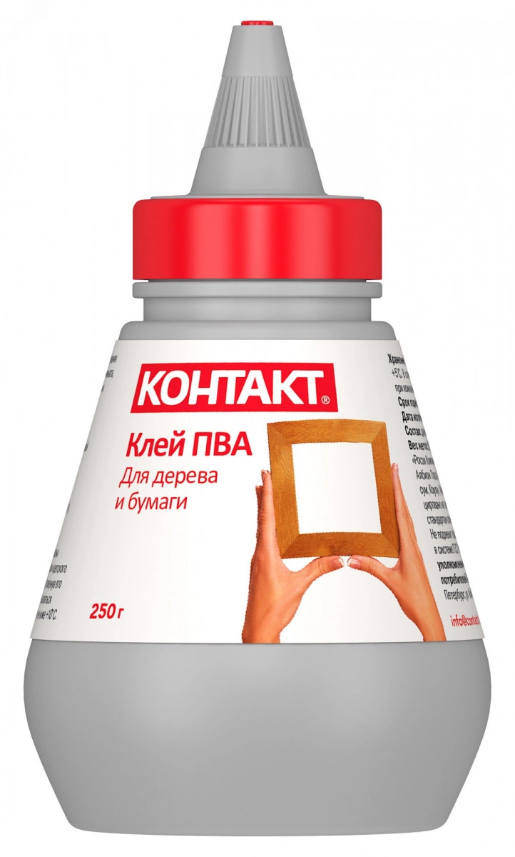 Клей изготовлен на водной основе, без использования вредных растворителей, поэтому рекомендован для домашних поделок и детского творчества. Применяется для склеивания бумаги, картона, изделий из дерева. Полностью готов к применению, обладает высокой клеящей способностью, безопасен при использовании. Склеенным изделием можно пользоваться через 5–6 часов. Легко смывается с рук теплой водой. Сохраняет свои свойства при размораживании. Клей в большом устойчивом флаконе для тех, кто клеит много и часто. Самоочищающийся дозатор обеспечивает равномерное нанесение клея, не потеряется, потому что его не нужно снимать - только слегка отвернуть для использования.