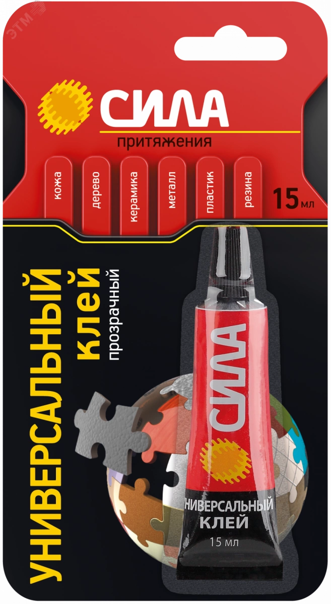 Универсальный клей 'Сила' применяется для соединения различных материалов, включая дерево, ПВХ, полистирол, оргстекло, резину, войлок, кожу, фарфор, керамику и стекло. Благодаря удлиненному носику, клей легко наносить на труднодоступные места. «Сила» является прозрачным клеем, что делает его идеальным выбором для незаметного склеивания прозрачных материалов. Клей обладает широкой областью применения и подходит для различных поверхностей. Он также водостойкий, что позволяет использовать его в местах с повышенной влажностью. Кроме того, клей способен склеивать пористые материалы, такие как дерево и бумага, обеспечивая надежное и прочное соединение.