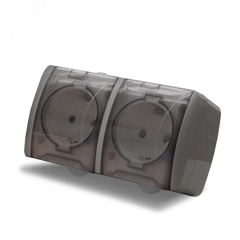Полное описание: Клио розетка двухместная с прозрачной крышкой Клио, IP54, с/з, о/у, 16А, 220В, серый (еврослот)