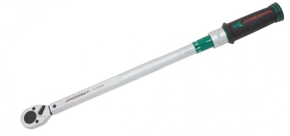 Динамометрические ключи JONNESWAY серии ''Т27'' предназначены для проведения слесарно-монтажных работ с крепежом любого присоединительного профиля с различным крутящим моментом. Диапазон регулировок момента для динамометрического ключа серии T271001N составляет от 200 до 1000 Нм. Динамометрические ключи JONNESWAY серии ''Т27'' внесены в ГРСИ (Государственный реестр средств измерений). Принцип действия ключей динамометрических предельных, регулируемых, тактильно акустического типа заключается в том, что под действием приложенной к рукоятке ключа силы при достижении заранее установленного значения крутящего момента силы ключ издает четко слышимый щелчок, что указывает на достижение установленного значения крутящего момента.