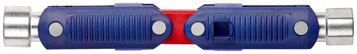 00 11 06 V03 Ключ для электрошкафов „DoubleJoint“ для систем запирания в электротехнике, в сетях газо- и водоснабжения, в технике вентиляции и кондиционирования, промышленности, инженерных системах здания и т.д.. с креплением для наконечников /4'' с магнитом. четыре различных профиля из цинкового литья в одном ключе. общая длина плеча - 97 мм. карта самообслуживания/ блистер. - Диапазон профиля квадрат - 5,0-8,0mm - Диапазон профилей ключа с двумя бородками - 3?–?5mm - Диапазон профиля трехгранник - 7,0-9,0mm