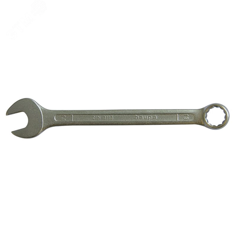 Комбинированный ключ используется для монтажа болтовых соединений. Изготовлен из хромованадиевой стали, для защиты от коррозии применяется хромирование, шлифованные головки, поворот зева 15 градусов
