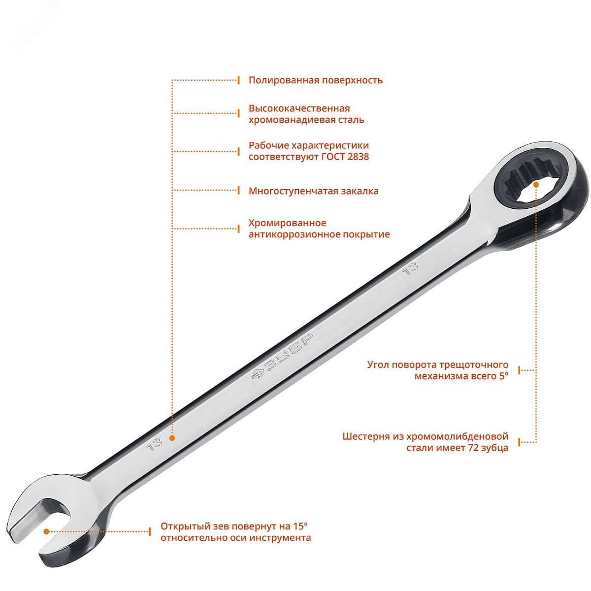 Полное описание: Ключ гаечный комбинированный трещоточный 13 мм