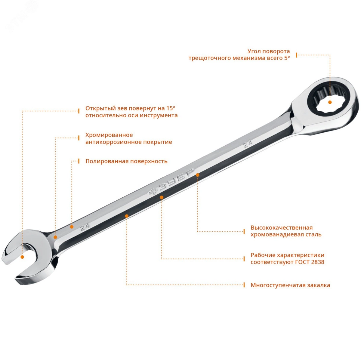 Ключ гаечный комбинированный трещоточный 24 мм