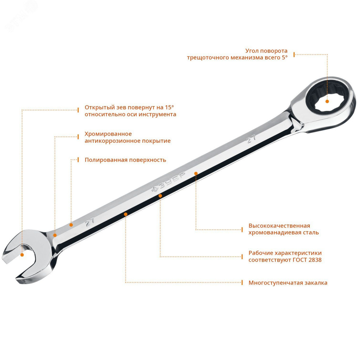 Ключ гаечный комбинированный трещоточный 27 мм