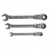 Набор комбинированных трещоточных ключей предназначен для монтажа резьбовых соединений при проведении слесарно-монтажных, авторемонтных, сантехнических работ. Трещоточный механизм накидной части ключа, позволяет комфортно работать в местах с ограниченным пространством. Размеры ключей - 8, 10, 12, 13, 14, 15, 17, 19 мм. Количество зубцов трещотки - 72. Минимальный угол поворота кольцевой трещоточной части - 5 градусов. Материал ключей - хром-ванадиевая сталь. Покрытие - матовое никелирование. Твердость - HRC 42-48. Упаковка - пластиковый холдер