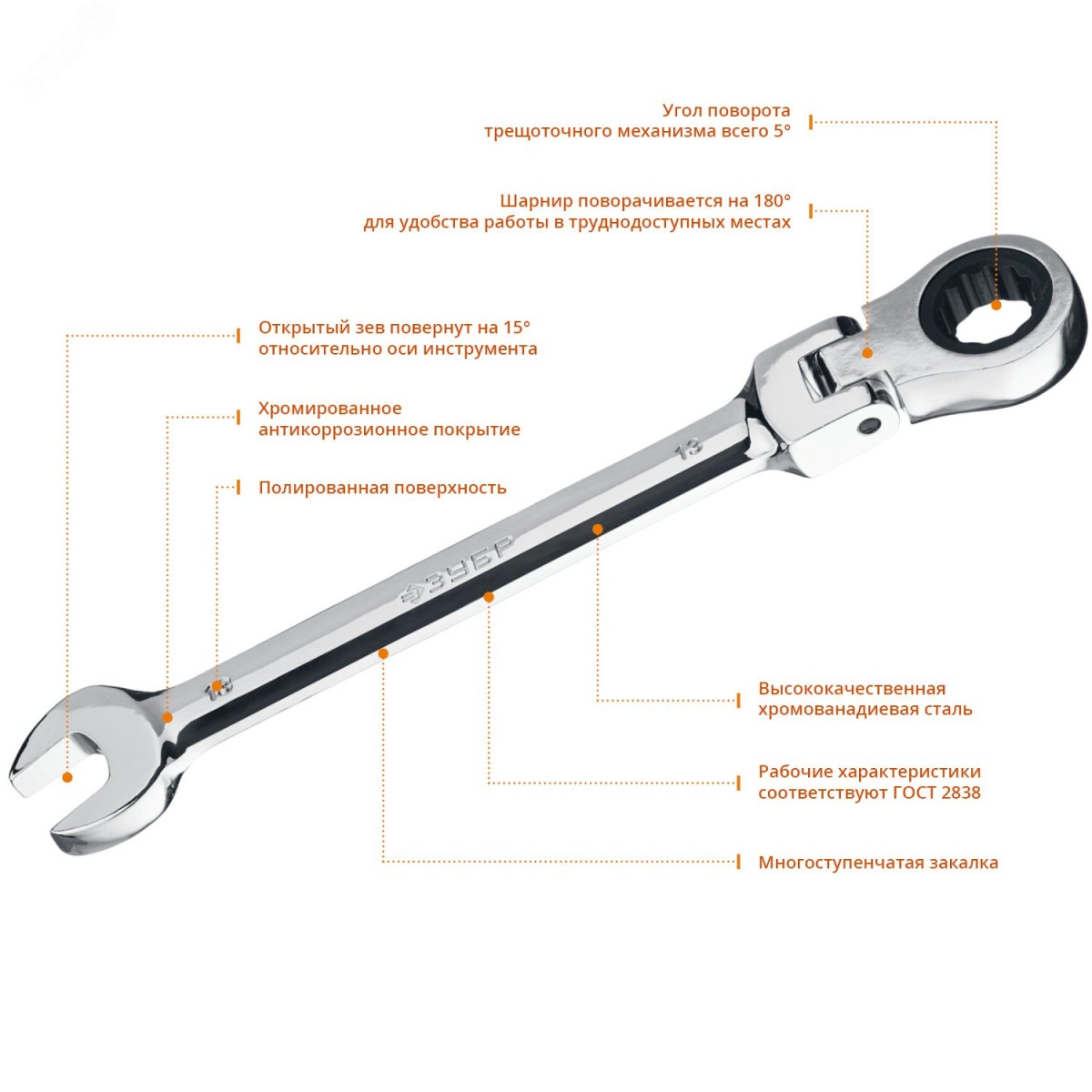 Ключ гаечный комбинированный трещоточный шарнирный 13 мм