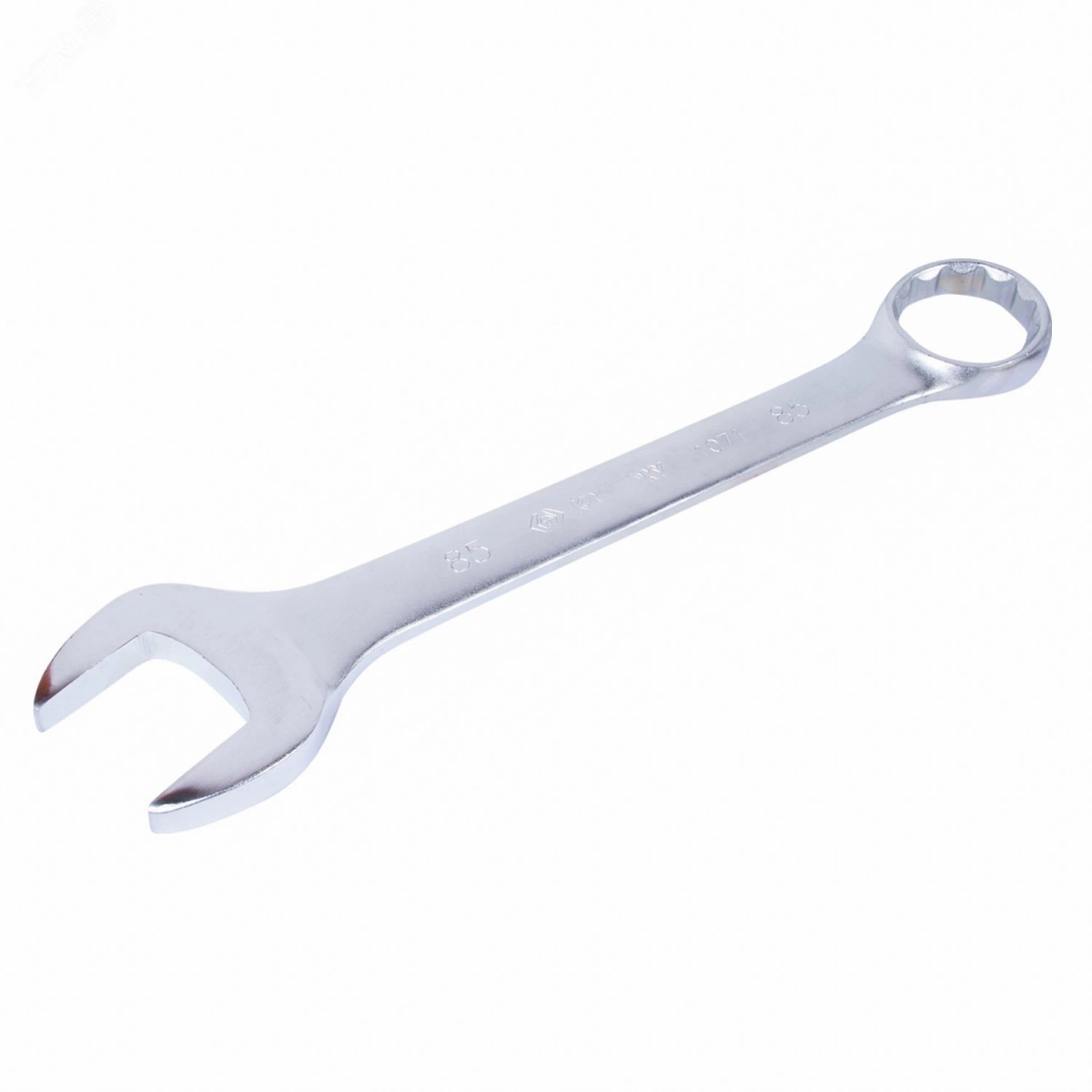Работа с крепежом больших размеров. Специальный изгиб 15 градусов рожковой либо накидной части ключа позволит работать в местах с ограниченным доступом к крепежу. Универсальность -. Работа с крепежом как с торца, так и с боку, в зависимости от места выполняемых работ, 12-тигранный профиль накидной части универсален в работе с головками болтов или гайками как 6-ти, так и 12-тигранного профиля