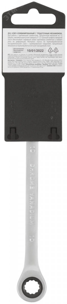Ключ комбинированный трещоточный, CrV реверсивный механизм 10 мм