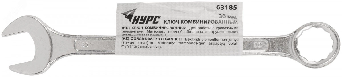 Ключ комбинированный Стандарт КУРС предназначен для работ с крепежными элементами. Ключи изготовлены из качественной инструментальной стали, что обеспечивает их прочность и износостойкость. Накидная часть ключа выдерживает максимальные нагрузки и наиболее эффективна при первичном откручивании и окончательном затягивании. Рожковая часть ключа эффективна при работе в труднодоступных местах. Эргономичная форма ключей обеспечивает надежный хват. Хромированное покрытие предотвращает коррозию.