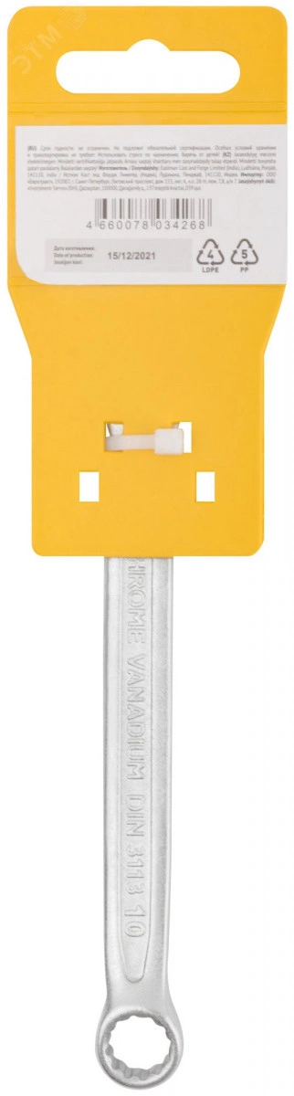 Ключ комбинированный усиленный ''Гранд'', CrV, холодный штамп 10 мм