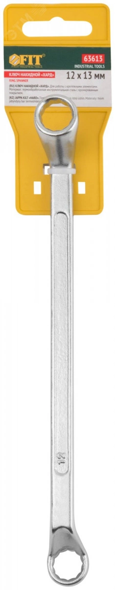 Ключ накидной Хард FIT IT предназначен для работ с крепежными элементами. Ключи проходят процесс закалки, повышающей твердость и износостойкость ключей. Наклон рабочих частей в 15 градусов повышает эффективность работы. Накидная часть ключа выдерживает максимальные нагрузки и наиболее эффективна при первичном откручивании и окончательном затягивании. 12-гранный профиль рабочей части прочно фиксируется на крепеже. Эргономичная форма ключа обеспечивает надежный хват. Хромированное покрытие предотвращает коррозию.