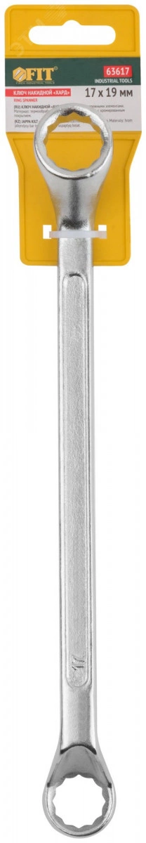 Ключ накидной Хард FIT IT предназначен для работ с крепежными элементами. Ключи проходят процесс закалки, повышающей твердость и износостойкость ключей. Наклон рабочих частей в 15 градусов повышает эффективность работы. Накидная часть ключа выдерживает максимальные нагрузки и наиболее эффективна при первичном откручивании и окончательном затягивании. 12-гранный профиль рабочей части прочно фиксируется на крепеже. Эргономичная форма ключа обеспечивает надежный хват. Хромированное покрытие предотвращает коррозию.