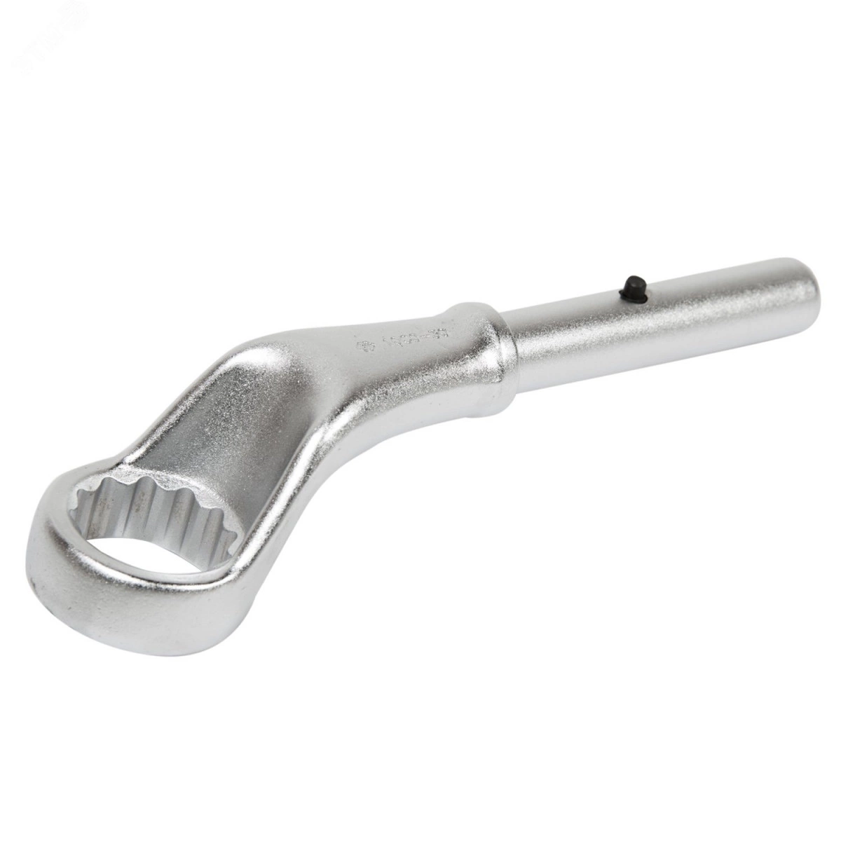 Работа с крепежом конструкций и техникой промышленного масштаба. Для использования совместно с рычагом-трубой арт 111946. Накидной профиль прямого действия - работа в местах, где другие форматы ключей не подходятСпециальный изгиб ключа позволяет работать в местах с ограниченным доступом к крепежу, 12-тигранный профиль накидной части универсален в работе с головками болтов или гайками как 6- ти, так и 12-тигранного профиля