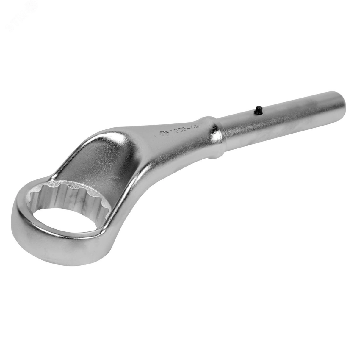 Работа с крепежом конструкций и техникой промышленного масштаба. Для использования совместно с рычагом-трубой арт 112576. Накидной профиль прямого действия - работа в местах, где другие форматы ключей не подходятСпециальный изгиб ключа позволяет работать в местах с ограниченным доступом к крепежу, 12-тигранный профиль накидной части универсален в работе с головками болтов или гайками как 6- ти, так и 12-тигранного профиля