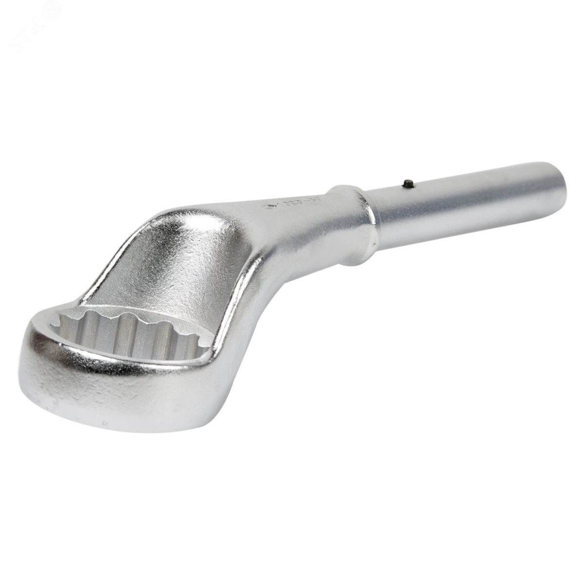 Работа с крепежом конструкций и техникой промышленного масштаба. Для использования совместно с рычагом-трубой арт 113086. Накидной профиль прямого действия - работа в местах, где другие форматы ключей не подходятСпециальный изгиб ключа позволяет работать в местах с ограниченным доступом к крепежу, 12-тигранный профиль накидной части универсален в работе с головками болтов или гайками как 6- ти, так и 12-тигранного профиля