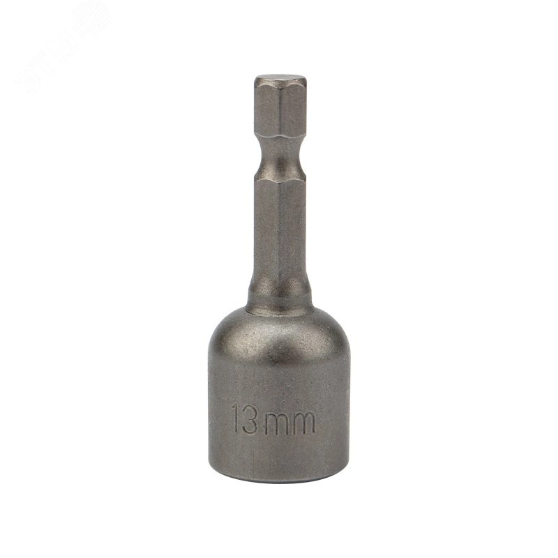 Ключ-насадка 13х48 мм, 1/4' магнитная для закручивания кровельных саморезов, болтов и гаек. Магнит впрессован внутри головки насадки, благодаря чему закручиваемый крепеж надежно фиксируется во время работы. Применяется с шуруповертом, дрелью или отверткой.