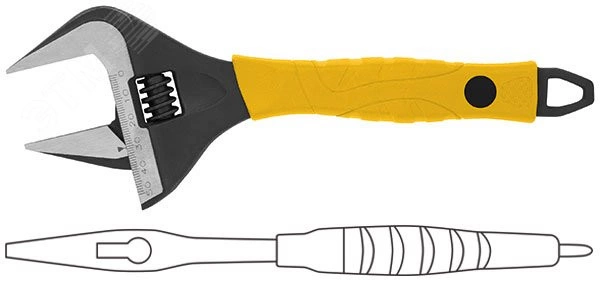 Ключ разводной ''Эталон'', CrV, узкие губки, шкала, экстра увеличенный захват, прорезиненная ручка 250 мм (50 мм)