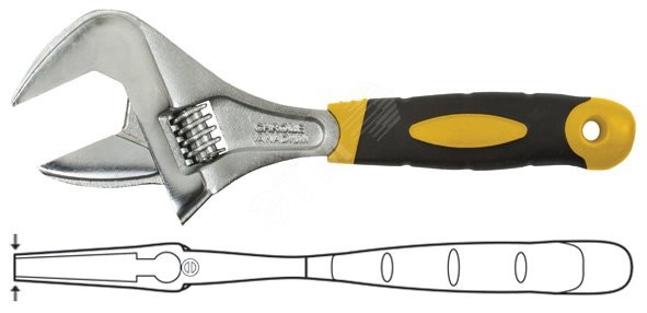 Ключ разводной ''Гранд'', CrV, узкие губки, шкала, увеличенный захват, прорезиненная ручка 250 мм (52 мм)