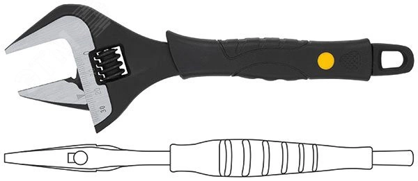 Контур'. Экстраувеличенный рабочий диапазон губок. Размерная шкала. Уменьшенная толщина губок для работы в труднодоступных местах. Материал - инструментальная сталь с фосфатированным покрытием, пластиковая накладка на ручку. Упаковка - пластиковый подвес.