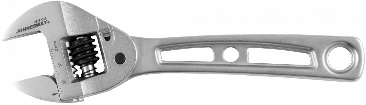 Разводной гаечный ключ с зауженными губками. Прецизионно изготовленные детали механизма перемещения подвижной губки обеспечивает минимальные рабочие зазоры и плавную регулировку. Ключ изготовлен из хромованадиевой стали по стандарту DIN 3117, ANSI/ASME B107.8M, полностью соответствует ГОСТу 7275-75.