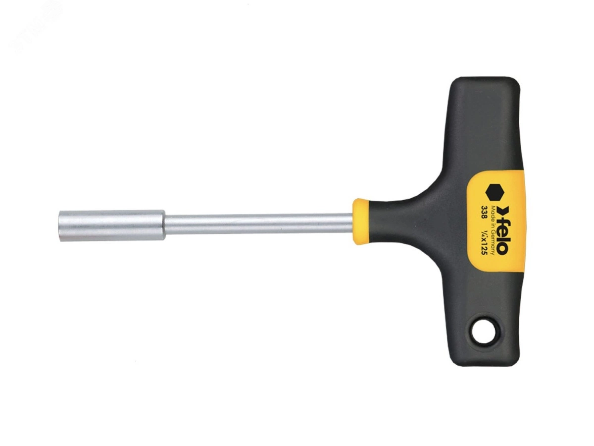Отвертка шестигранный ключ Felo Т-образной формы предназначена для проведения монтажно-демонтажных и авторемонтных работ с головками 13 мм. Двухкомпонентная рукоятка с мягким внешним покрытием Soft-Grip отвертки изготовлена из устойчивого к повреждениям и агрессивным средам пластика. Ударопрочный стержень проходит по всей длине рукоятки и изготовлен из высококачественной инструментальной стали (CrMoV), дополнительно закаленной в масле, что значительно повышает рабочий ресурс инструмента. Отверстие в рукоятке для удобного хранения и дополнительного использования инструмента в качестве рычага. Подходит для ежедневного профессионального использования. Страна производства - Германия. Гарантия 15 лет.