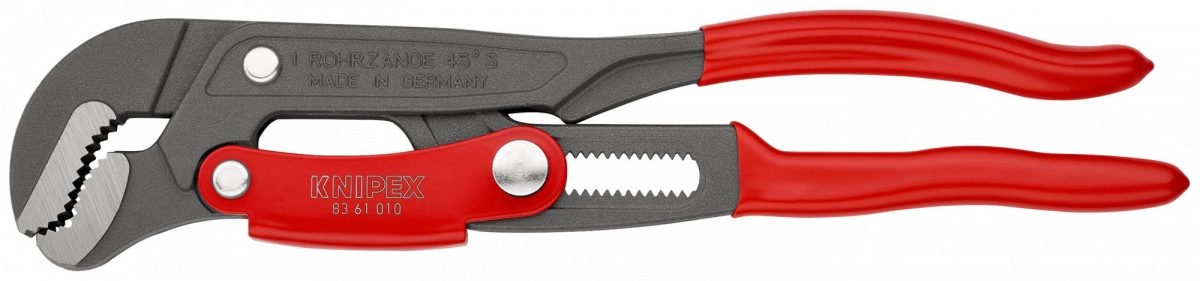 83 61 010 Ключ трубный с S-образными губками Защита от защемления пальцев. быстрая и точная регулировка раствора губок непосредственно на детали простым нажатием кнопки. экономия сил благодаря самофиксации инструмента на детали. Cлучайное изменение положения ручек исключено. высокая износостойкость благодаря дополнительно закаленному зубчатому соединению. высокая нагрузочная способность благодаря ручкам, выполненным из улучшенной стали. - раствор губок - 42mm - Параметры для труб (диаметр) - 1 /8in - Параметры для труб (диаметр) - 42mm - Диапазон для гаек, размер под ключ - 42mm - Внутренний диаметр дюймы - 1 in - - 25mm