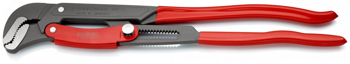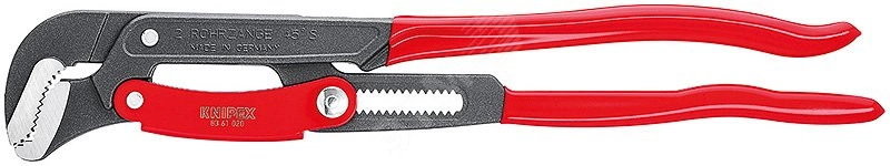 83 61 020 Ключ трубный с S-образными губками Защита от защемления пальцев. быстрая и точная регулировка раствора губок непосредственно на детали простым нажатием кнопки. экономия сил благодаря самофиксации инструмента на детали. Cлучайное изменение положения ручек исключено. высокая износостойкость благодаря дополнительно закаленному зубчатому соединению. высокая нагрузочная способность благодаря ручкам, выполненным из улучшенной стали. - Параметры для труб (диаметр) - 2 /4in - Параметры для труб (диаметр) - 70mm - Диапазон для гаек, размер под ключ - 70mm - Внутренний диаметр дюймы - 2 in - - 50mm