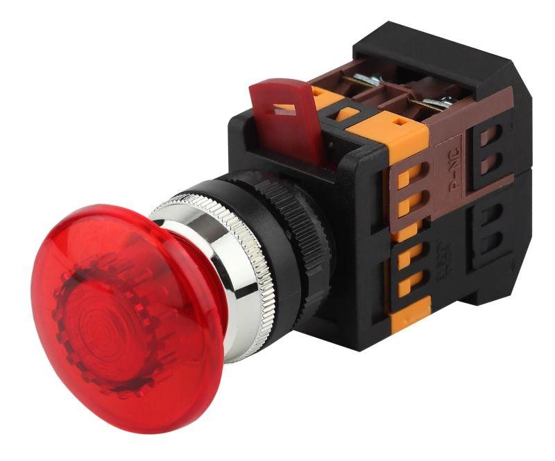 Кнопка AELA-22 "Грибок" d22мм 1з+1р неон/240В BBG20-AELA-K04E красн. ЭРА Б0045630
