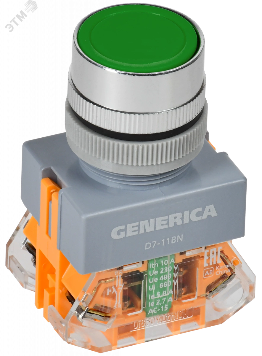 Кнопка D7-11BN d=22мм 1з+1р зеленая GENERICA