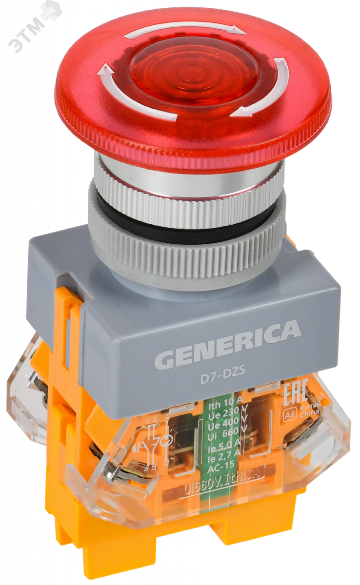 Кнопка D7-DZS Грибок d=22мм 1з+1р пов. с п/ф кр. GENERICA