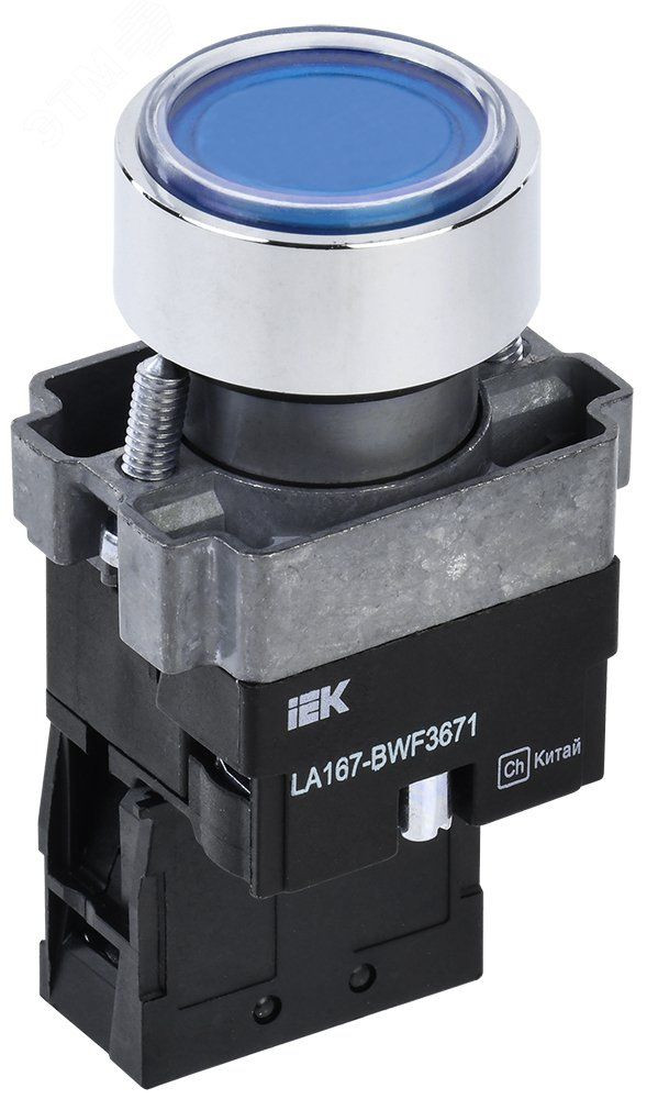 Кнопка LA167-BWF3671 d=22мм RC 1з с подсвет. синяя