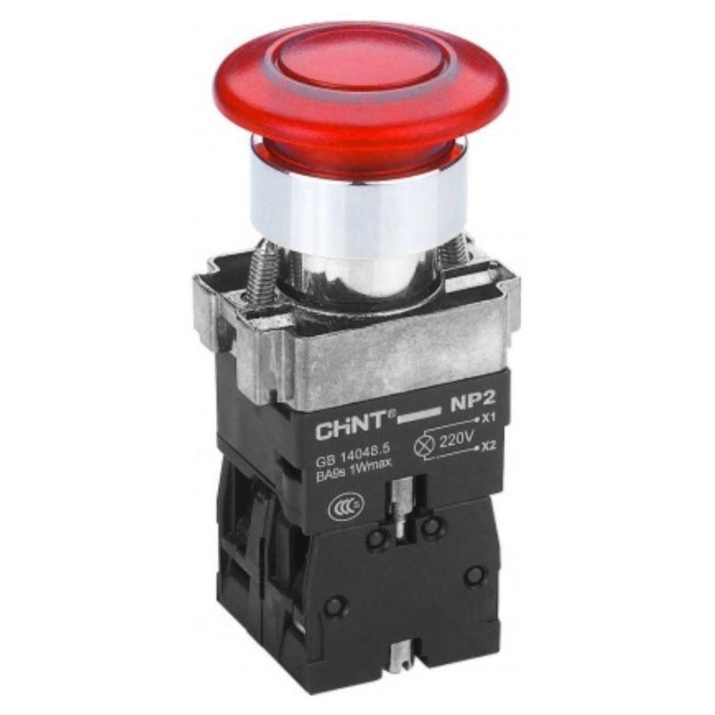 Кнопка управления "Грибок" d40мм NP2-BW4462 1НЗ IP40 с самовозвратом с подсветкой красн. (R) CHINT 575782