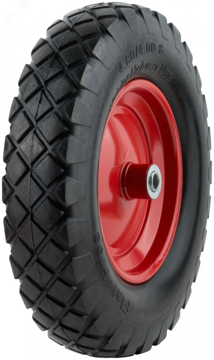 Колесо полиуретановое (без камеры). Диск стальной крашеный. 77631 - для тачки ТМ КУРС 77601/77602, ТМ FIT 77607. Стальной подшипник с посадочным диаметром 16 мм. 77633 - для тачки ТМ КУРС 77615, ТМ FIT 77617/77619, 77629. Стальной подшипник с посадочным диаметром 25,4 мм. 77635 - для тачки ТМ FIT 77611, 77612. Стальной подшипник с посадочным диаметром 16 мм.