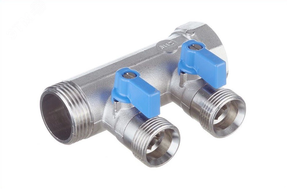 Коллектор 1' с синими шаровыми кранами, 2 выхода 3/4'НР под евроконус