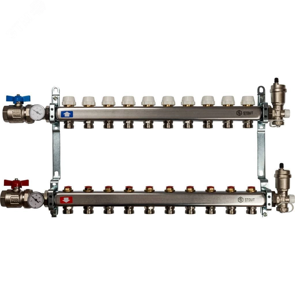 Коллектор из нержавеющей стали в сборе без расходомеров STOUT предназначен для работы с радиаторами, теплым полом, термостатами, системами охлаждения. Приспособление способно распределять теплоноситель на 2 узла. Представляет собой надежный и долговечный элемент за счет - высокой пропускной способности.
