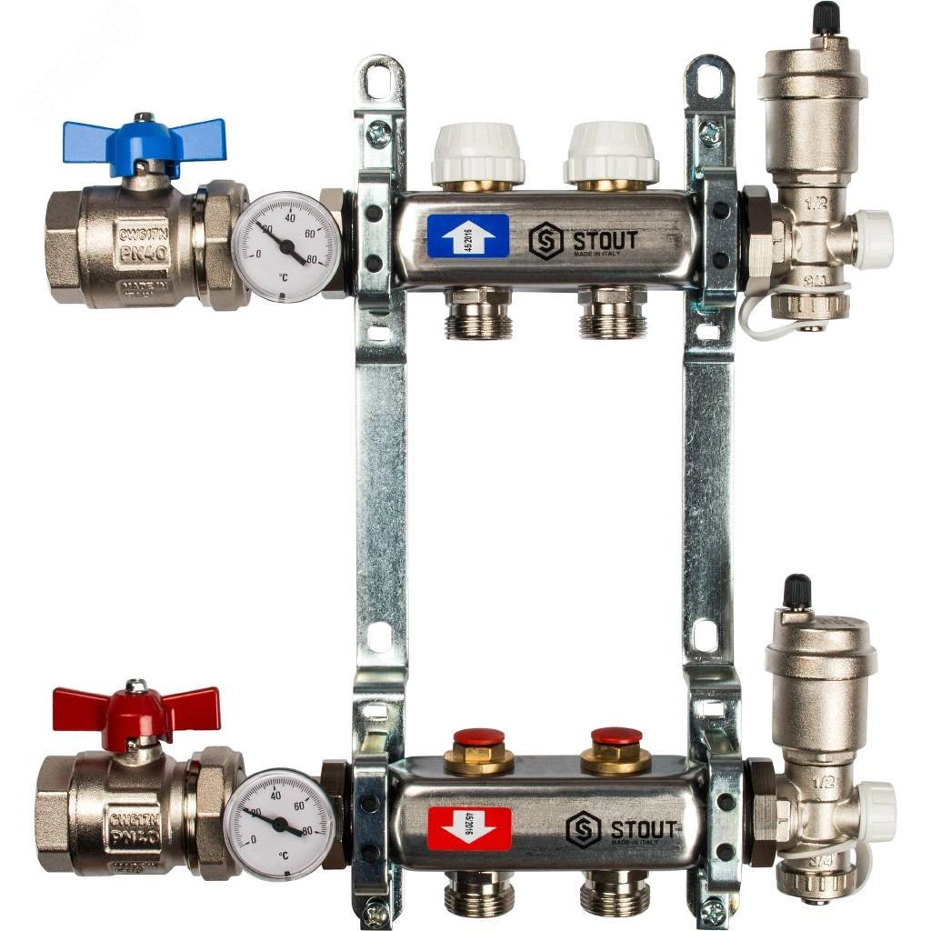 Коллектор из нержавеющей стали в сборе без расходомеров STOUT предназначен для работы с радиаторами, теплым полом, термостатами, системами охлаждения. Приспособление способно распределять теплоноситель на 2 узла. Представляет собой надежный и долговечный элемент за счет - высокой пропускной способности.