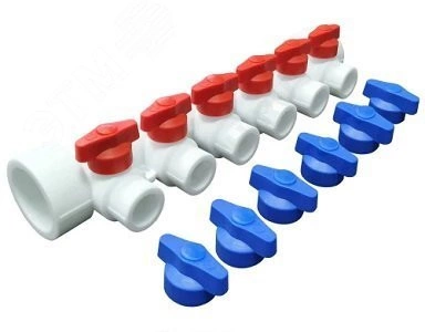 Коллектор PPR с отсечными кранами 40х20, 4 выхода универсальный,белый