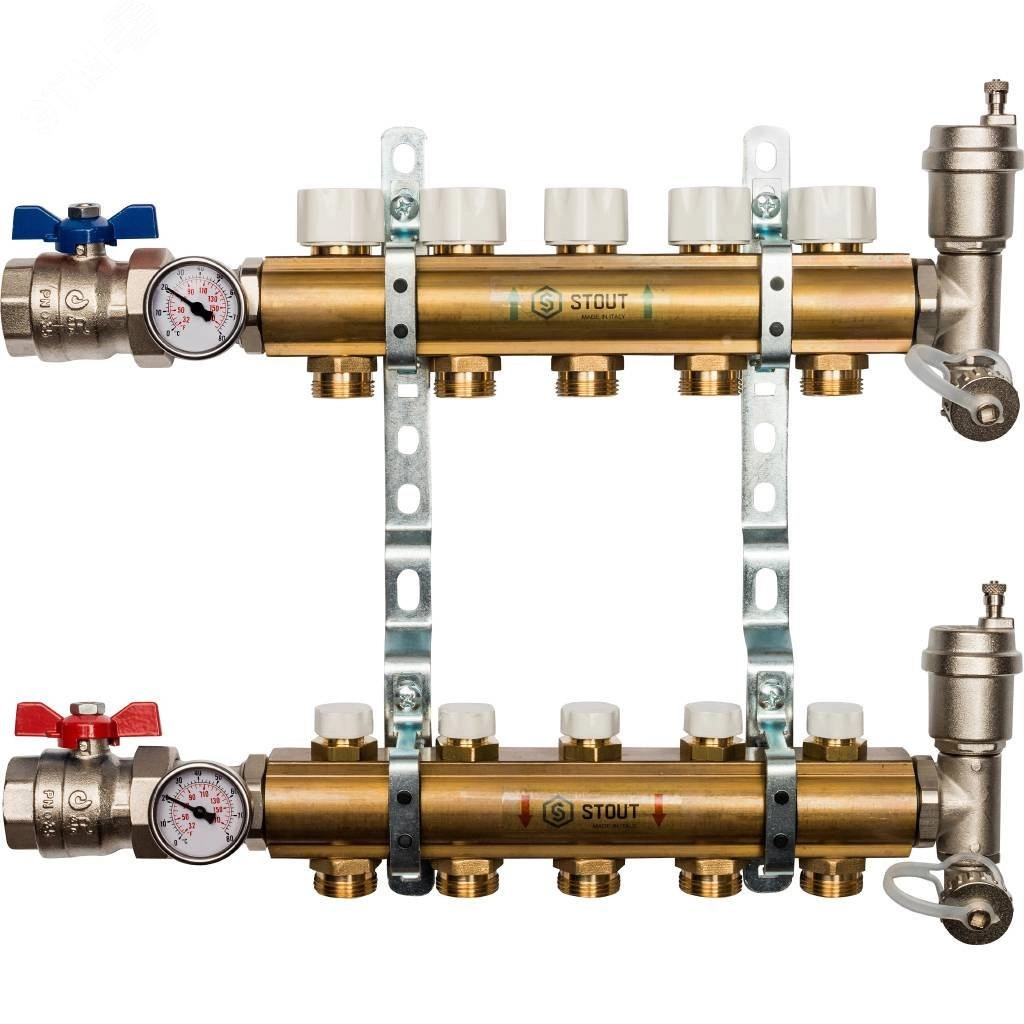 Распределительный коллектор из латуни без расходомеров равномерно раздает поток теплоносителя по контурам отопительной или водоснабжающей системы. Содержит 3 контура и позволяет регулировать степень нагрева каждого контура по отдельности. Использование латуни обеспечивает высокие эксплуатационные характеристики коллектора.