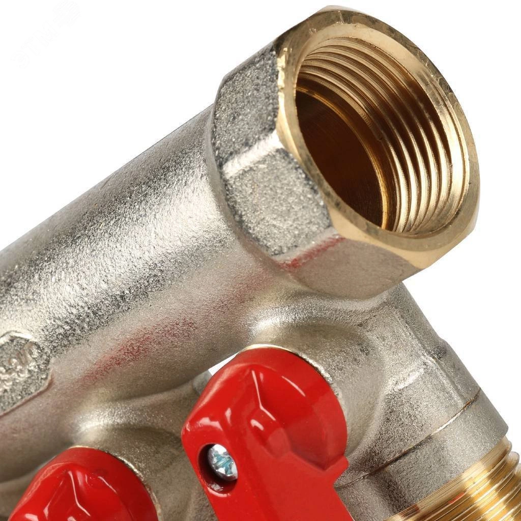 Коллектор с шаровыми кранами 3/4', 4 отвода 1/2' (красные ручки)