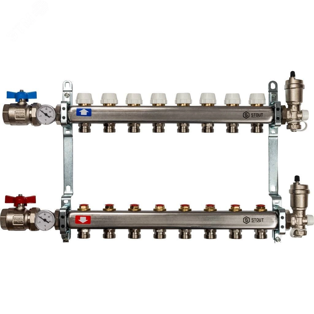 Коллектор STOUT из нержавеющей стали в сборе без расходомеров 8 выходов