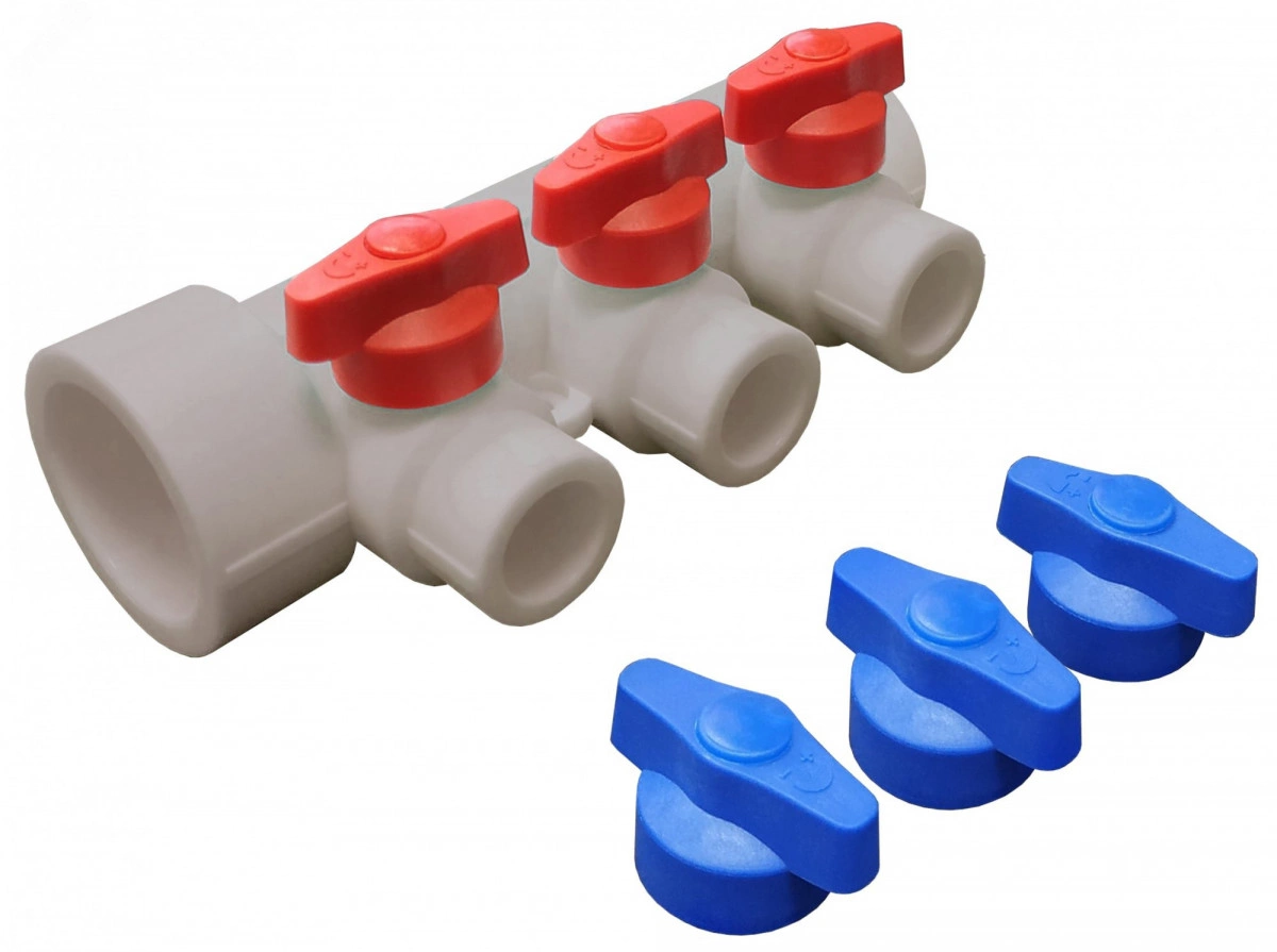 Коллектор универсальный с отсечными кранами 32х20 на 3 выхода (10/1) СЕРЫЙ
