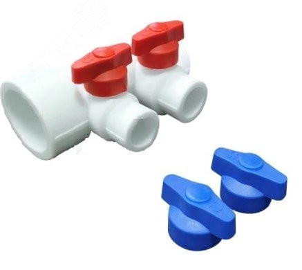Коллектор универсальный с отсечными кранами 40х20 на 2 выхода (10/1) БЕЛЫЙ