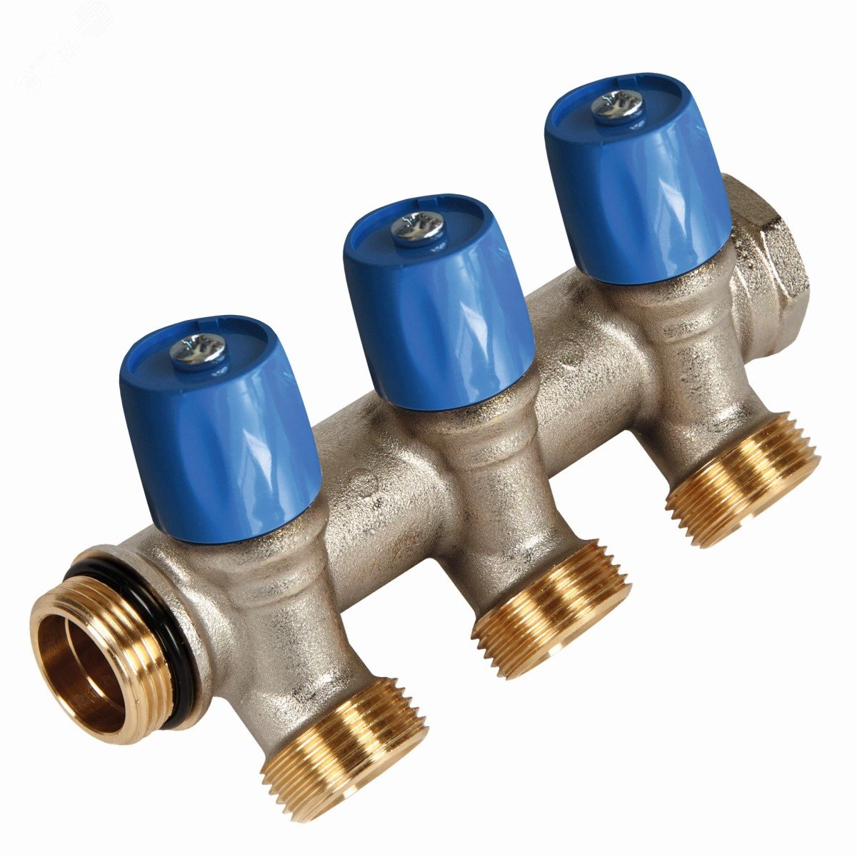 Коллектор с шаровыми кранами 3/4', 2 отвода 1/2' (синие ручки)