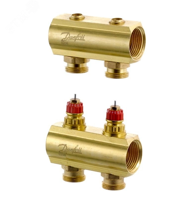 Коллекторная группа FHF-2 латунная 1' на 2 выхода со встроенными термостатическими вставками