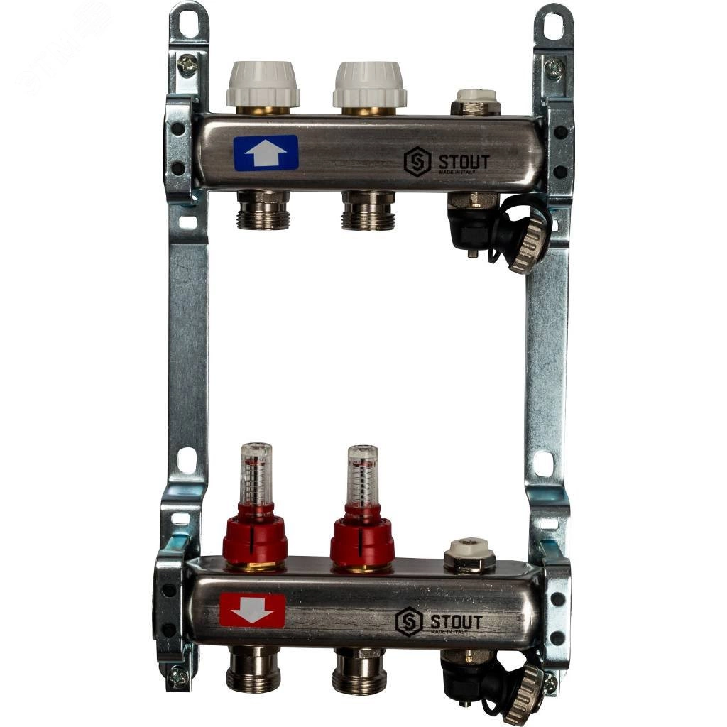 Коллекторная группа из нержавеющей стали 1' на 2 выхода со встроенными расходомерами