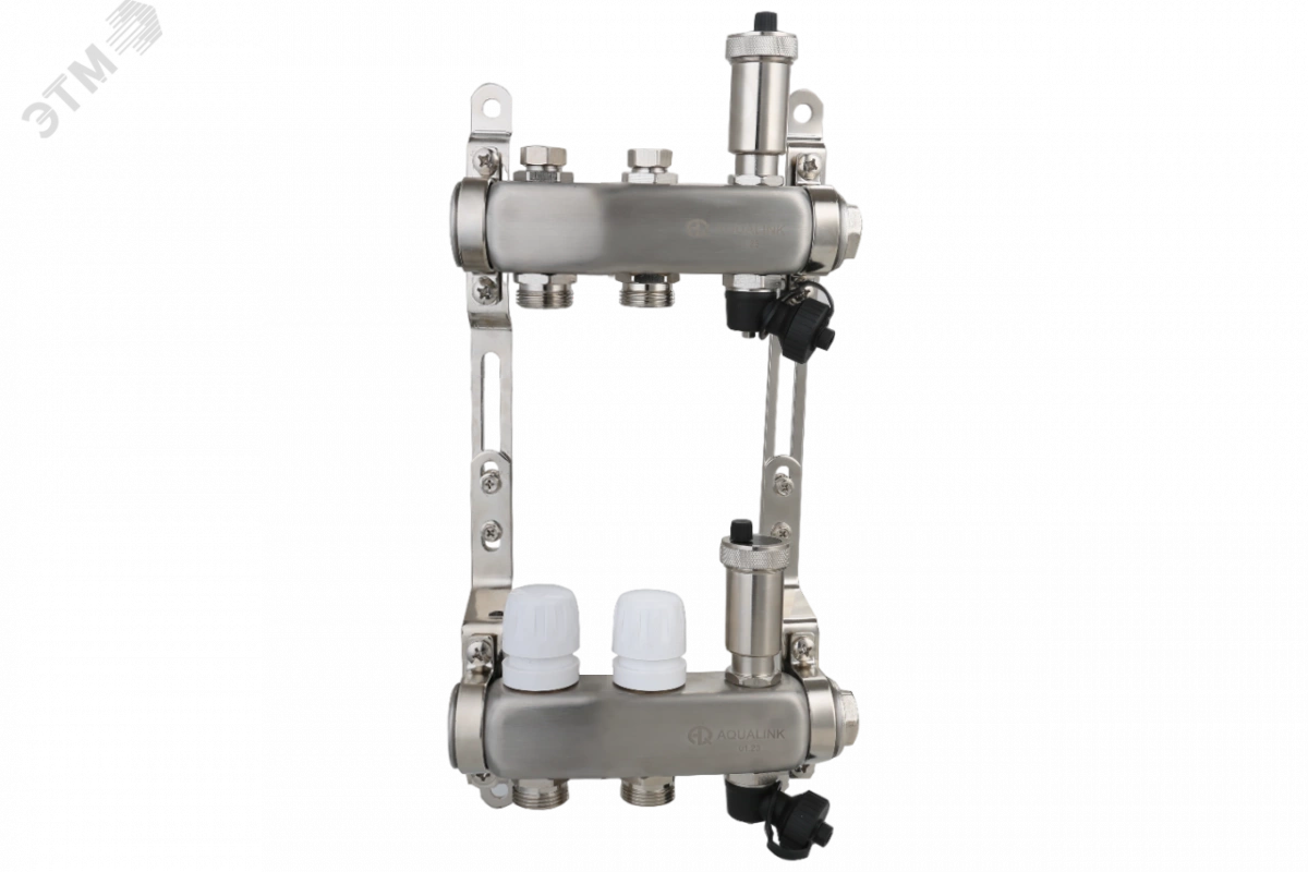 Коллекторная группа с настроечными и регулировочными клапанами, автоматическими воздухоотводчиками дренажными клапанами нержавеющей стали 1' 2 х 3/4'