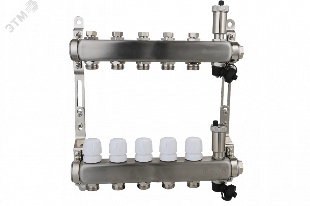 Коллекторная группа с настроечными и регулировочными клапанами, автоматическими воздухоотводчиками дренажными клапанами нержавеющей стали 1' 9 х 3/4'