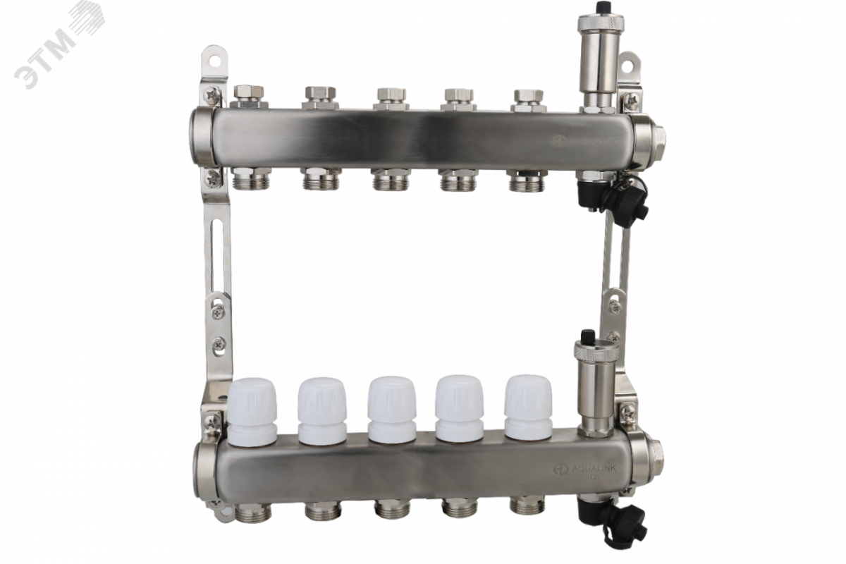 Коллекторная группа с настроечными и регулировочными клапанами, автоматическими воздухоотводчиками дренажными клапанами нержавеющей стали 1' 6x3/4'