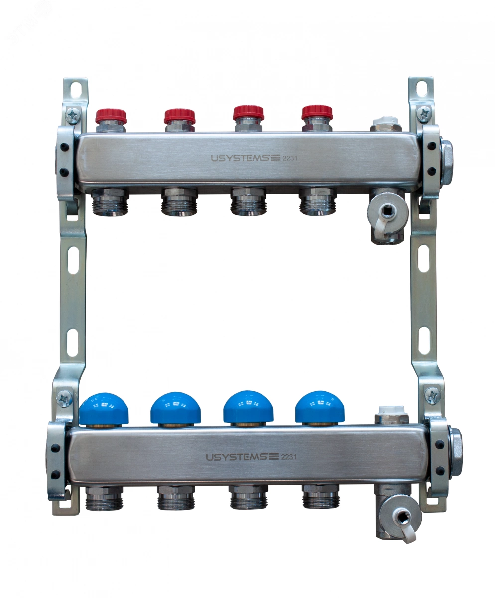 Коллектор для теплых водяных полов. Поставляется в сборе - просто установите его и подключите трубы. Совместим со всеми типами труб для теплых водяных полов.